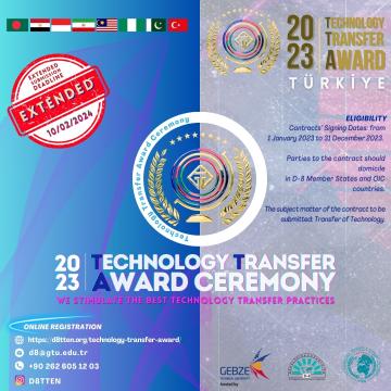 Türkiye will host the fourth round of the “Technology Transfer Award” (TTA 2023), on 12-13 March, 2024 organized by Gebze Technical University (GTU) and D-8 Technology Transfer and Exchange Network (D-8 TTEN). The award ceremony will recognize the best technology transfer contract nominated to the Secretariat, with the D-8 Secretary General and the D8-TTEN President presenting the award.