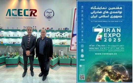 The Academic Center for Education, Culture and Research (ACECR), with the aim of developing international interactions and exporting technological products and services, in cooperation with the Deputy for Research and Technology and the Office of Scientific Cooperation and International Communications, participated in the 7th Iran Export Capabilities Exhibition (IRAN EXPO 2025) by displaying the achievements of 18 organizational units on 30 April 2025.